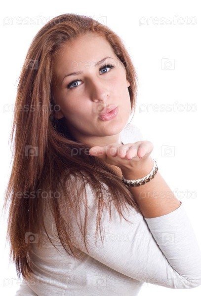 Милая девушка посылает воздушный поцелуй