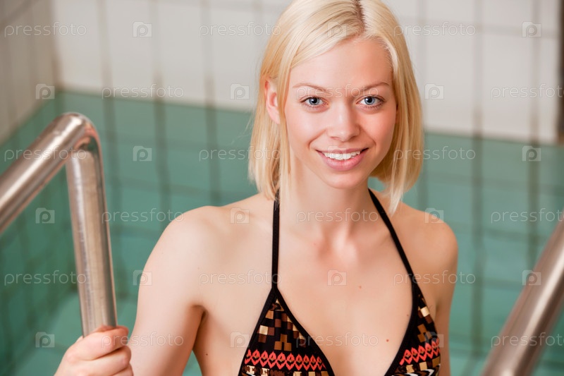 Портрет молодой женщины в бассейне