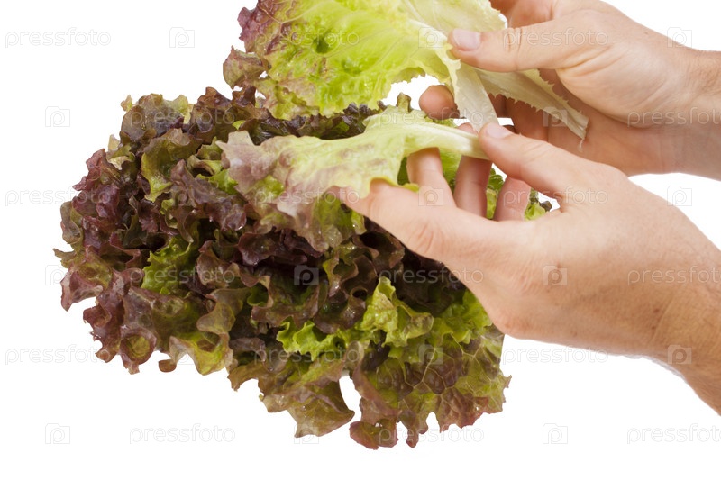 Листья салата в руках