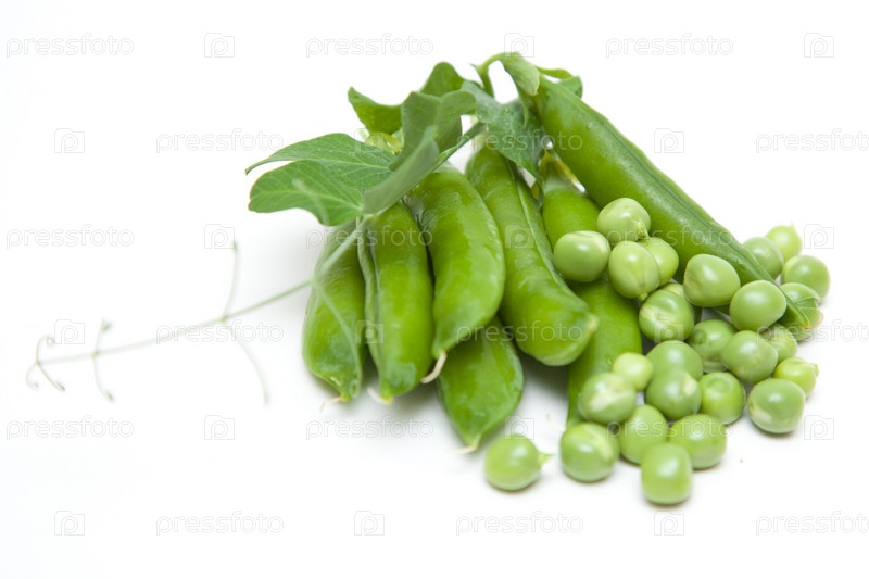 Зеленый горошек на белом фоне