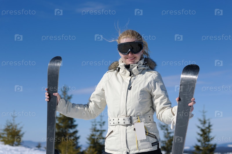 Девушка с лыжами в руках