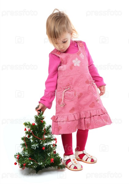 Маленькая девочка с новогодней елкой