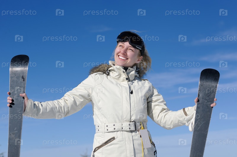 Девушка с лыжами в руках