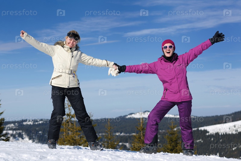 Две девушки веселятся зимой на открытом воздухе