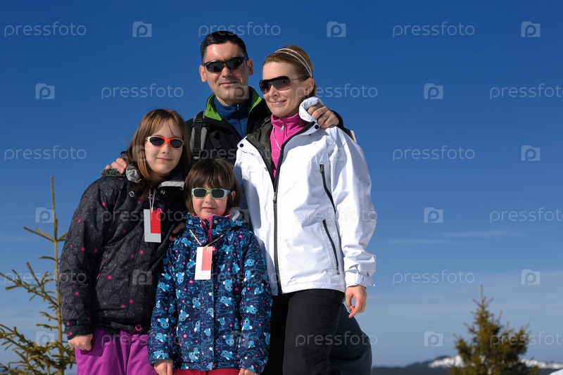 Портрет счастливой молодой семьи на открытом воздухе зимой