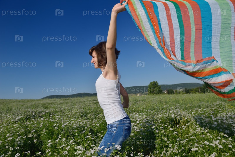 Молодая женщина в поле летом