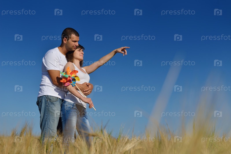 Счастливая пара в пшеничном поле