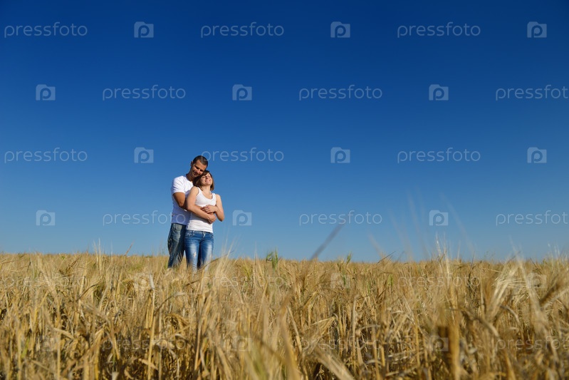 Счастливая пара в пшеничном поле