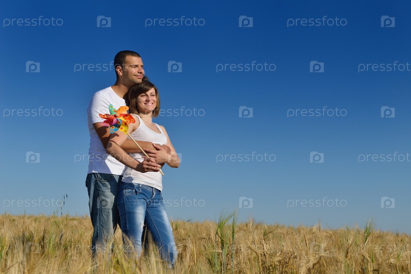 Счастливая пара в пшеничном поле