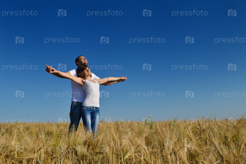 Счастливая пара в пшеничном поле