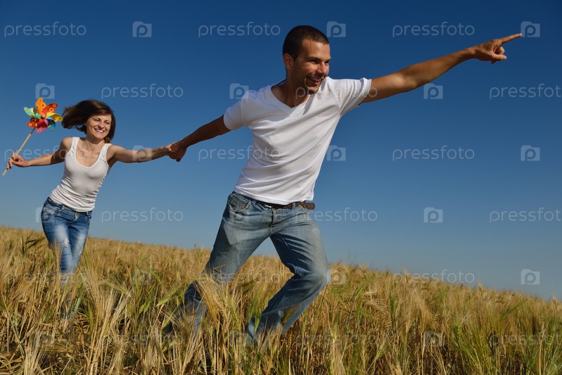Счастливая пара в пшеничном поле