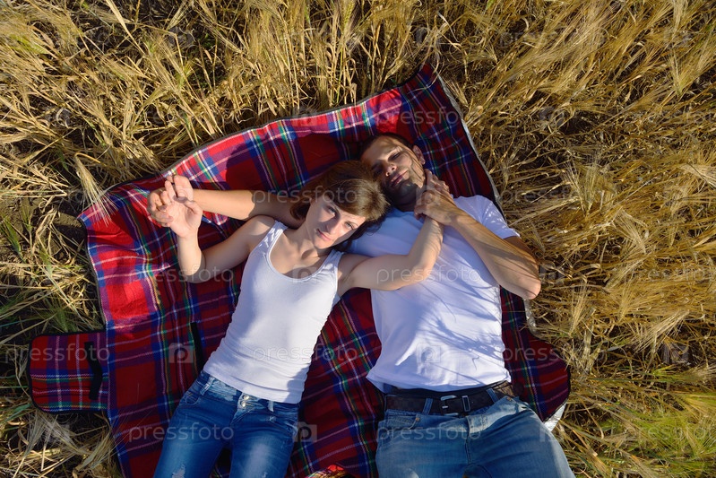 Счастливая пара в пшеничном поле