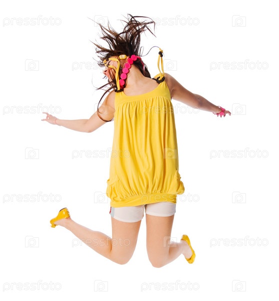 Девушка прыгает, на белом фоне