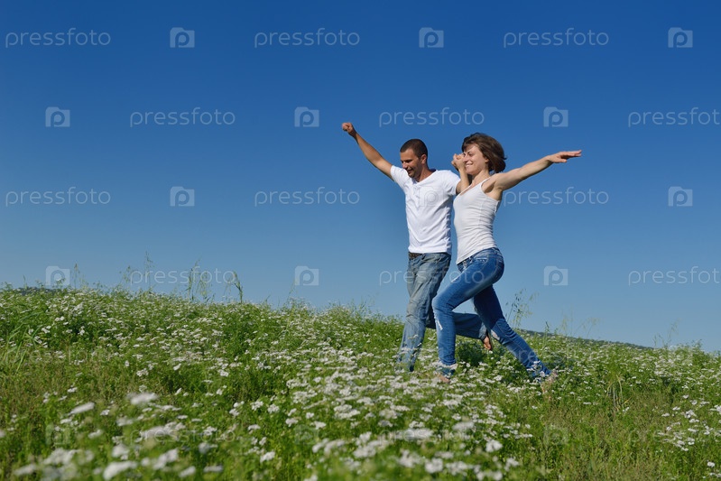 Счастливая пара в пшеничном поле