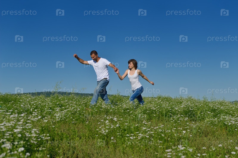 Счастливая пара в пшеничном поле
