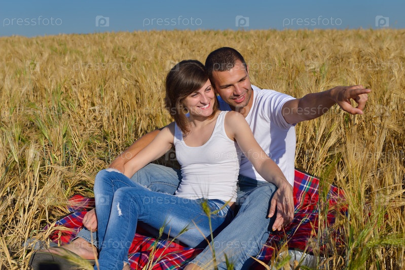 Счастливая пара в пшеничном поле