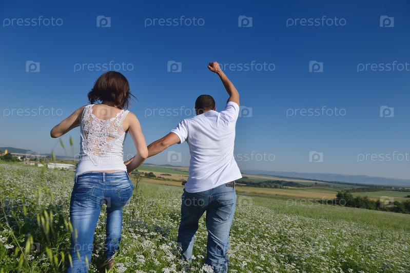 Счастливая пара в пшеничном поле