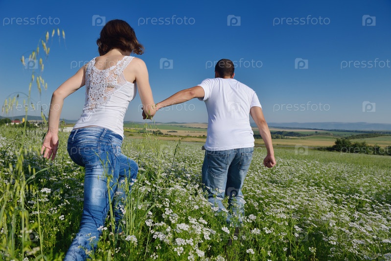 Счастливая пара в пшеничном поле