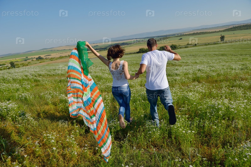 Счастливая пара в пшеничном поле