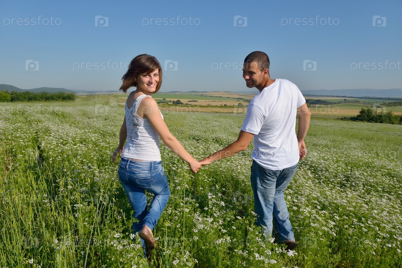 Счастливая пара в пшеничном поле