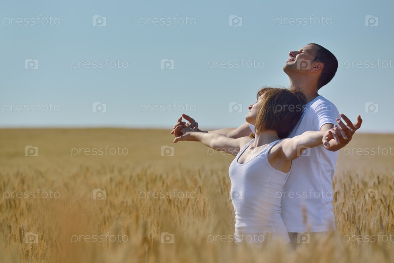 Счастливая пара в пшеничном поле