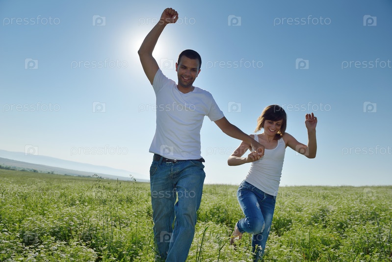 Счастливая пара в пшеничном поле
