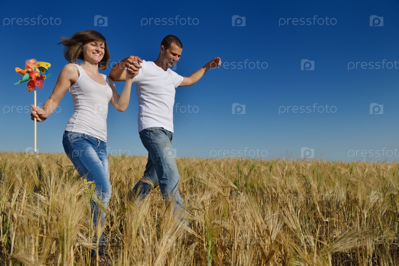 Счастливая пара в пшеничном поле