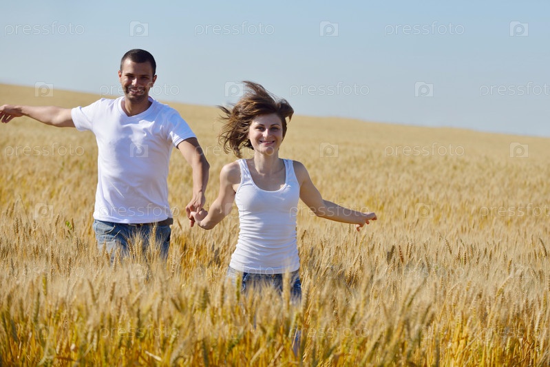 Счастливая пара в пшеничном поле