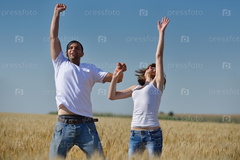Счастливая пара в пшеничном поле