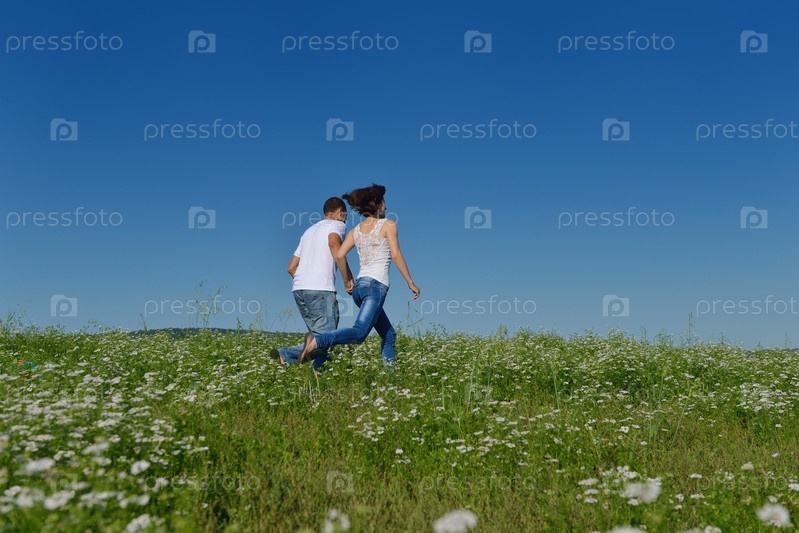 Счастливая пара в пшеничном поле