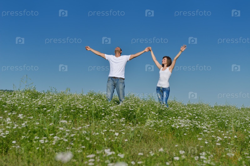 Счастливая пара в пшеничном поле