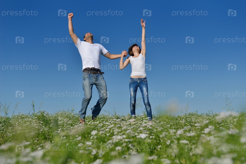 Счастливая пара в пшеничном поле