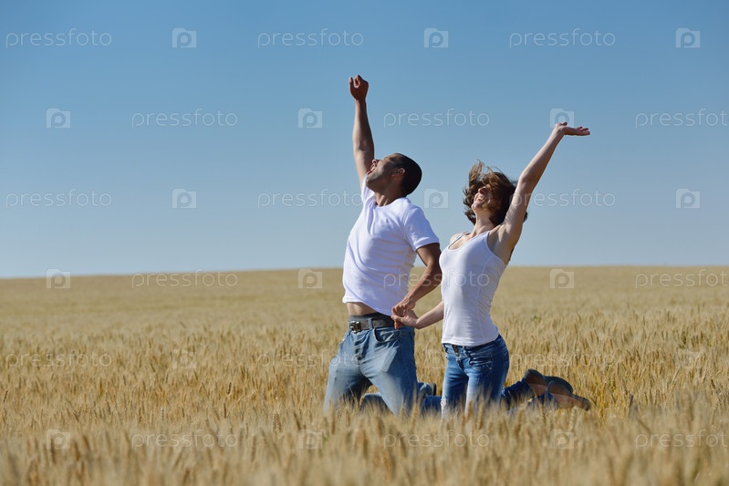 Счастливая пара в пшеничном поле