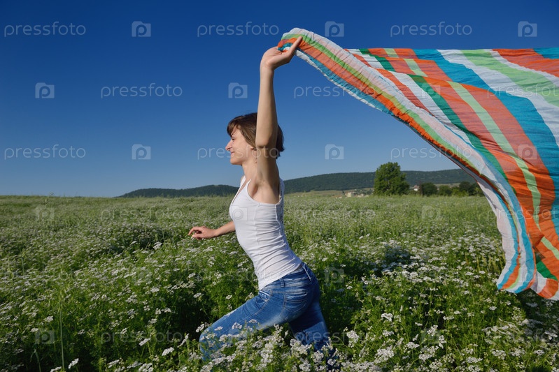 Молодая женщина в поле летом