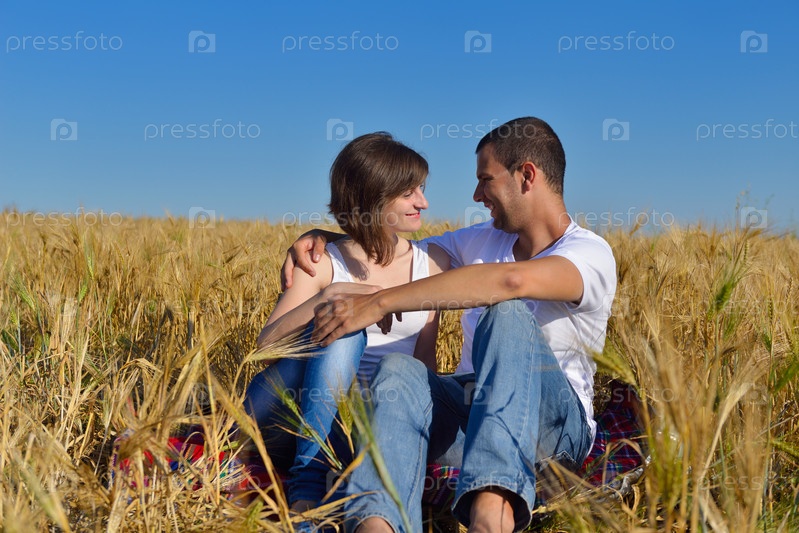 Счастливая пара в пшеничном поле