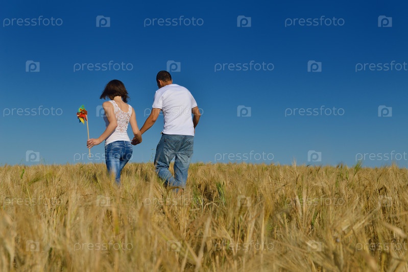 Счастливая пара в пшеничном поле