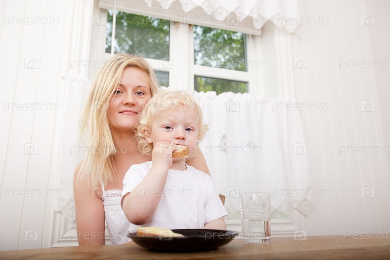 Мать с кушающим сыном