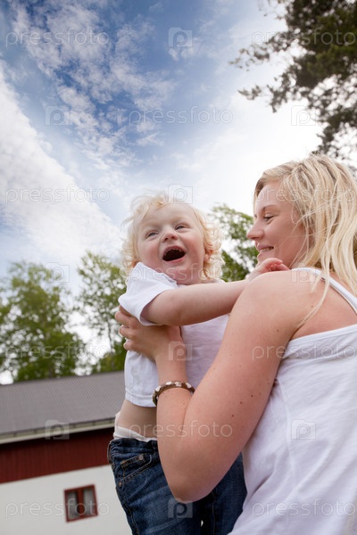 Мать держит сына
