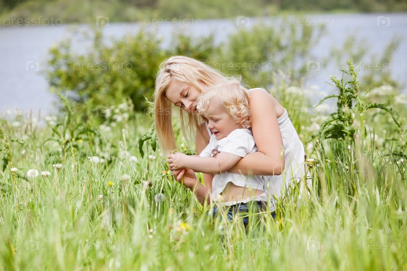 Мать и сын в траве