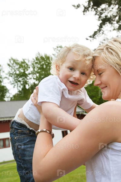 Портрет улыбающихся матери и сына
