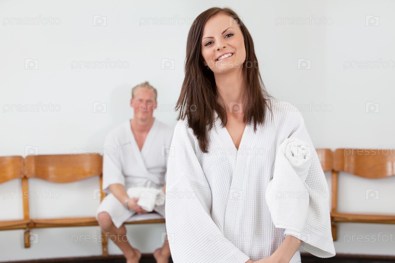 Красивая женщина в халате