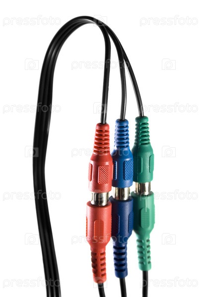 Крупным планом аудио-видео кабель на белом фоне