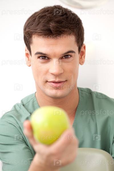 Стоматолог с яблоком