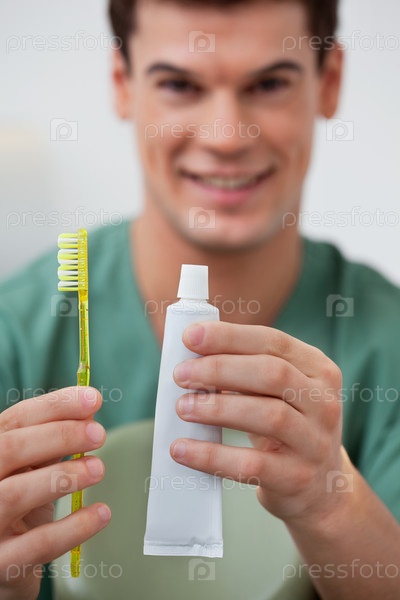 Стоматолог с зубной пастой и щеткой