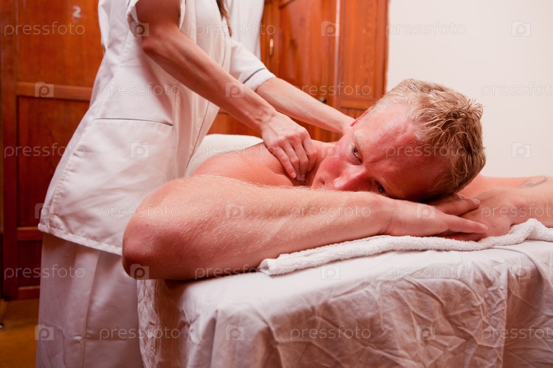Мужчине делают массаж в спа-салоне