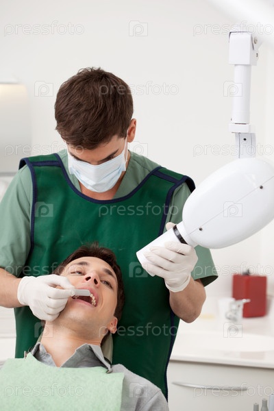 Врач подготавливает стоматологический рентген для снимка