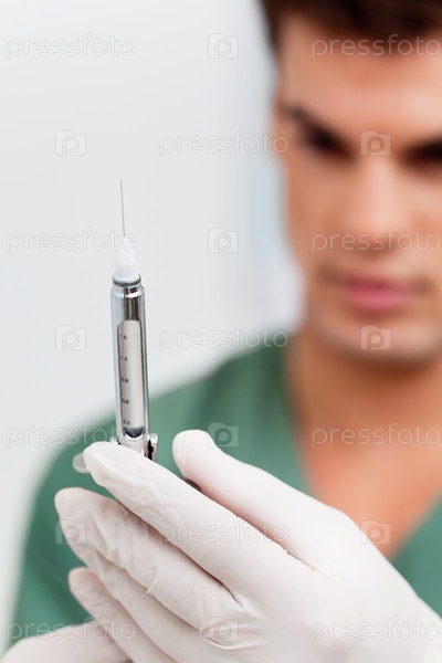 Стоматолог со шприцем в руках