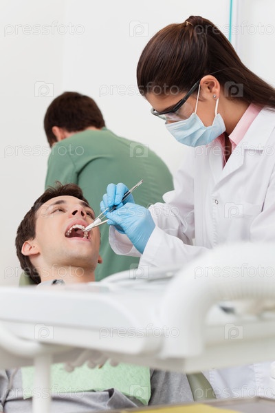 Стоматолог работает над зубами пациента