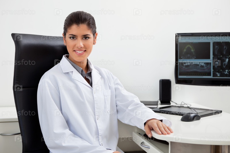 Стоматолог сидит за столом