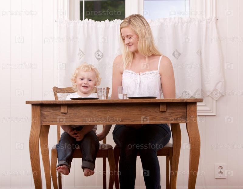 Мать и сын обедают